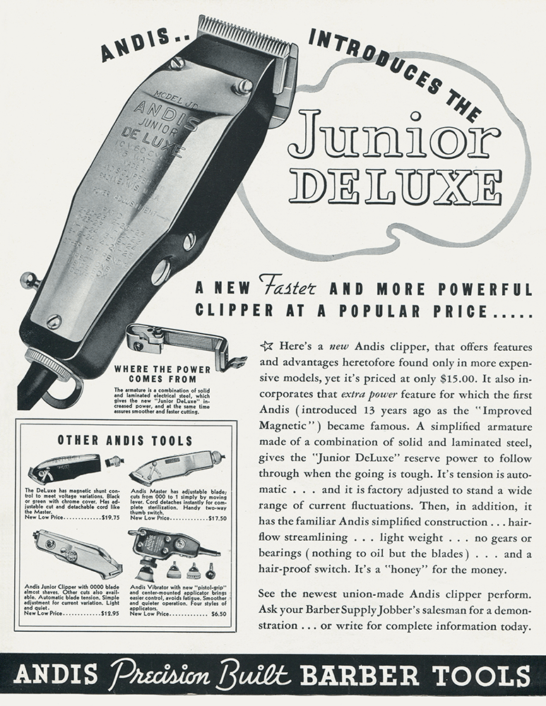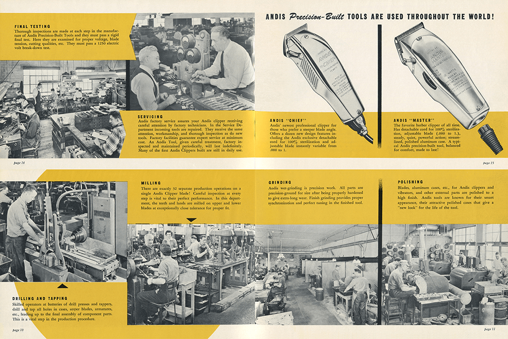 Andis Clipper がより小さく、より速く、より高いパフォーマンスを実現したことで競合バリカン製品に差をつけました(当時発売されていた他のクリッパーよりも)。 このクリッパーは、今日のマスタークリッパー(Master® Clipper)の第一世代であり、いまだにアンディスの最も人気のあるモデルの1つです。 当時の工場(作業場)はアンディス家の地下です。家族はそこでクリッパーの組み立てを手伝い、マシューは彼らと共にラシーンとその周辺のバーバーにドアツードア(訪問販売)で売り歩きました。 それから、そう長くない期間のうちに全米の多くの理髪師がアンディスバリカンを採用したため、同社はより多くの製造スペースが必要となってきました。当初、アンディス家の地下を経て工業用建物のスペースを借りていましたが、成長が進んだため、アンディスは再び移動する必要がありました。 そして、次は16,000平方フィートの敷地に新しい工場施設を用意しました。